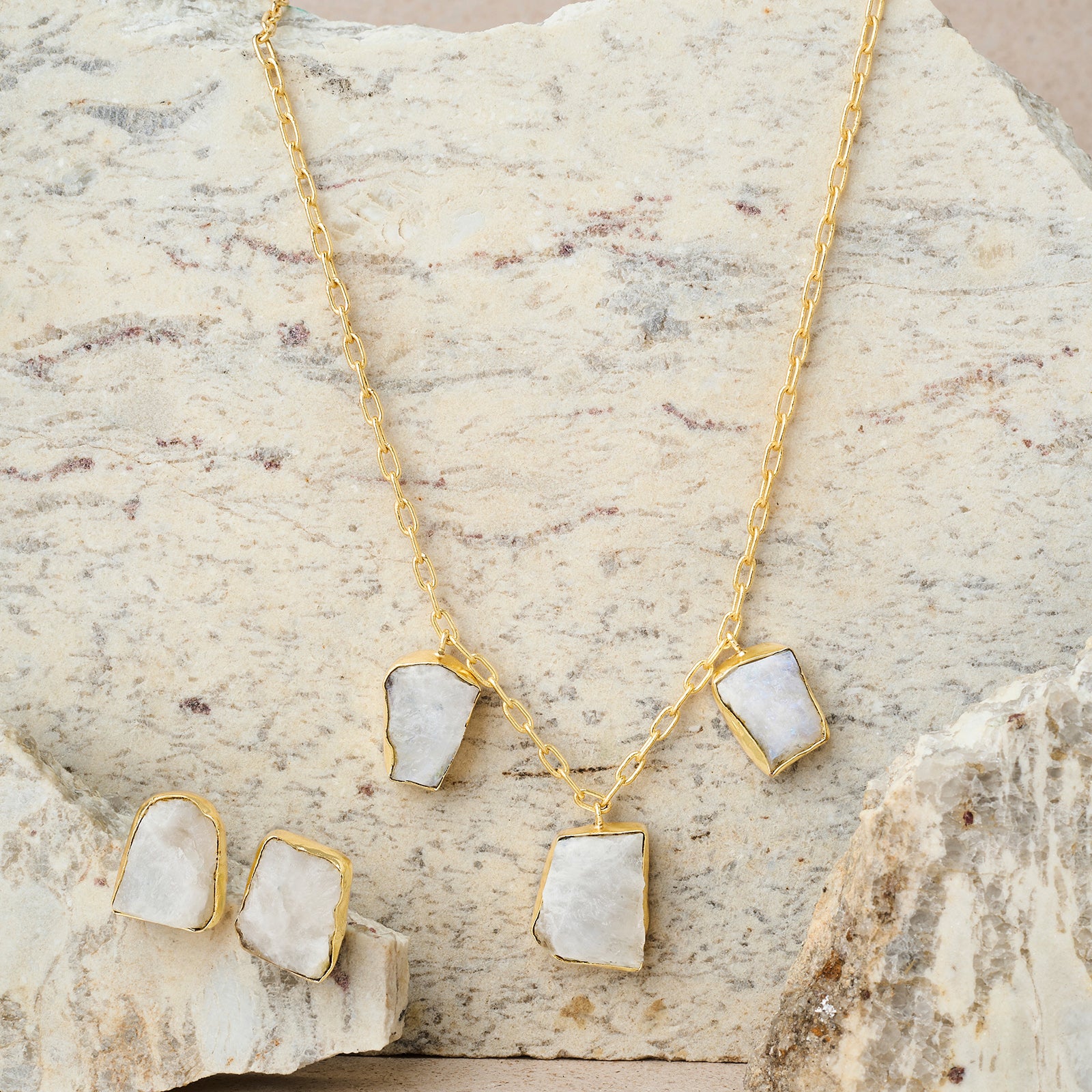 Soléa White Trio Natural Stone Necklace Set