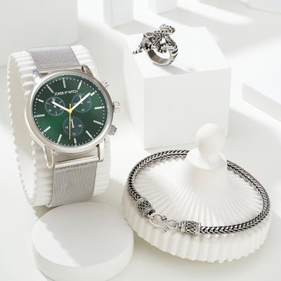 Watch | Granite Men's Watch with a Dark Green Dial and Sleek Silver Mesh Strap |