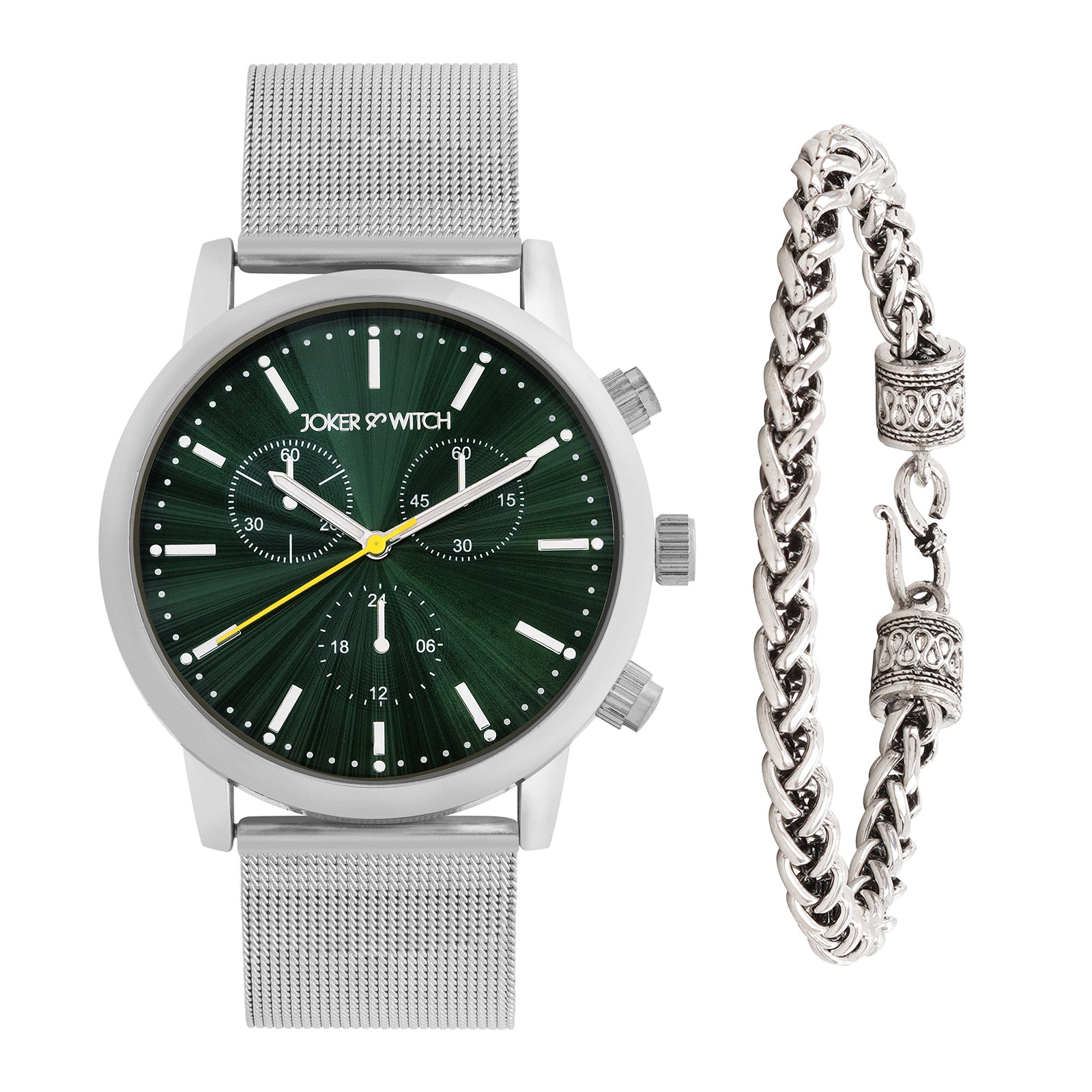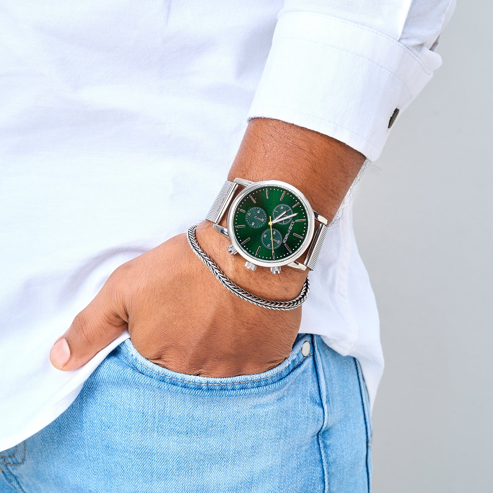 Watch | Granite Men's Watch with a Dark Green Dial and Sleek Silver Mesh Strap |