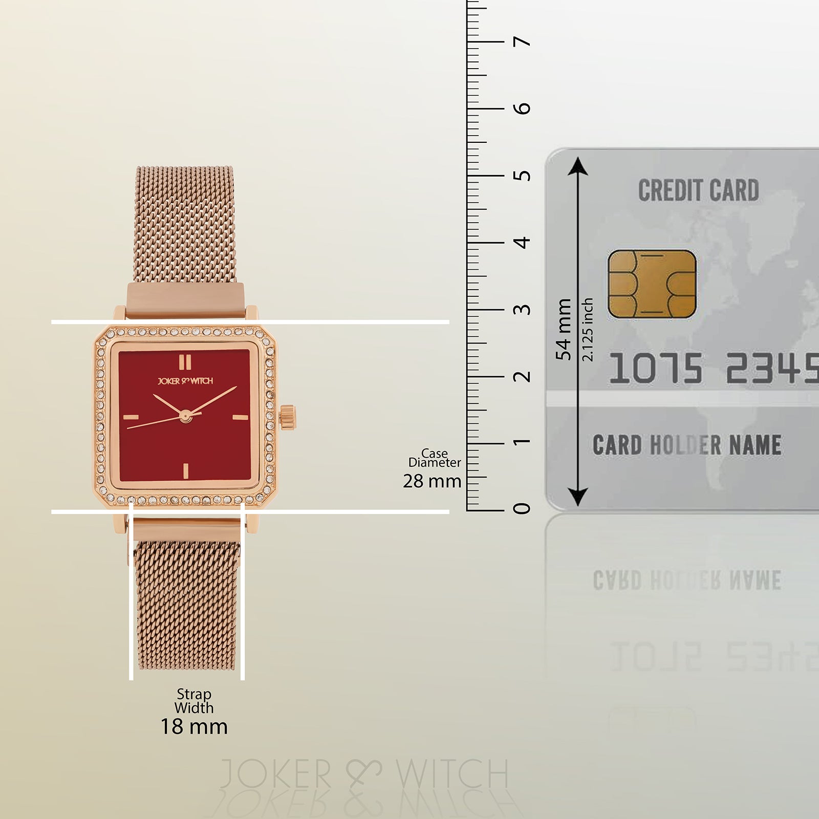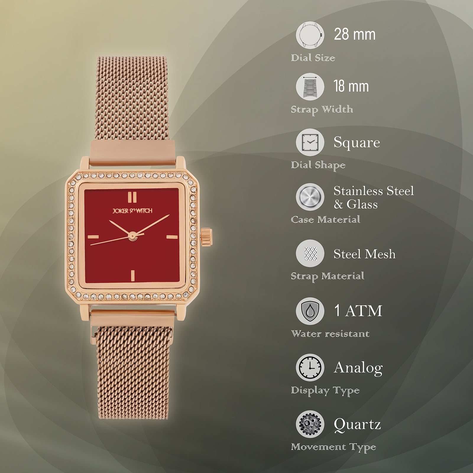 Octa Maroon Square Dial Rose Gold Metallic Strap Watch