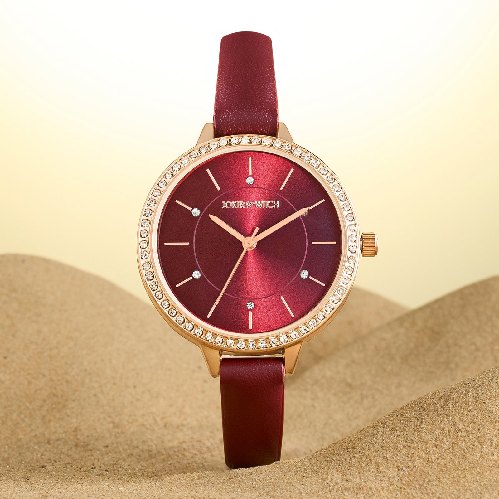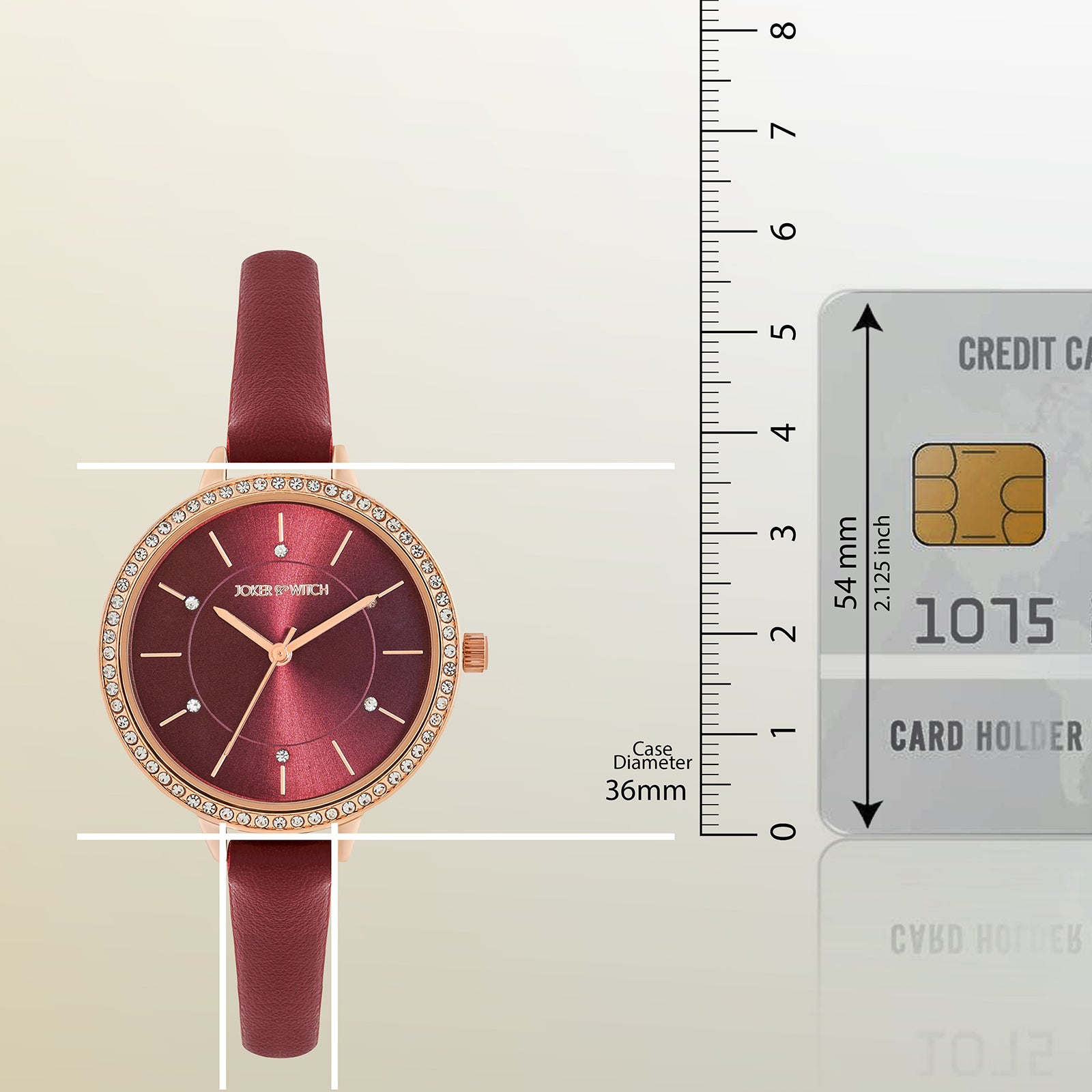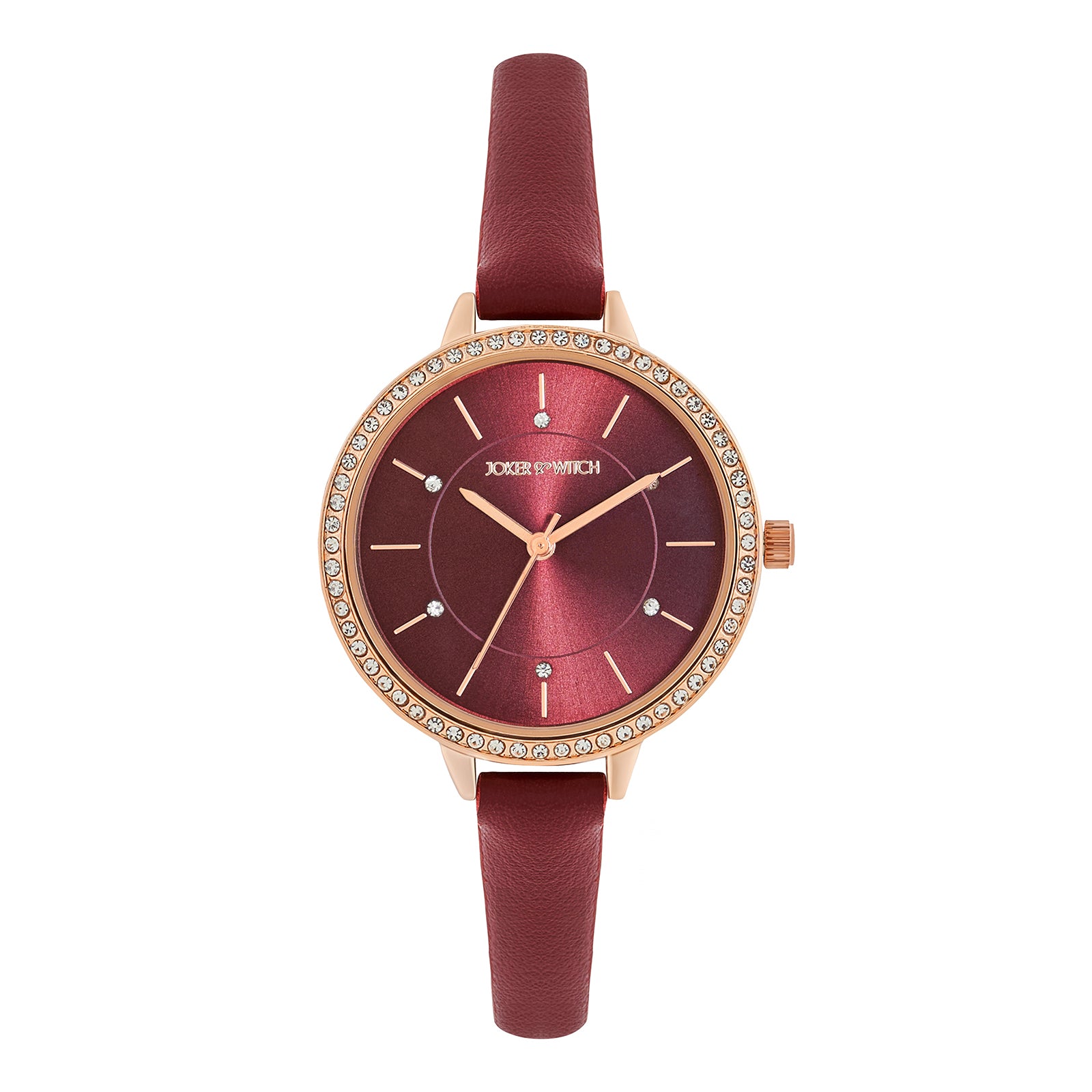 This chic timepiece features an ultra-thin case with rhinestones embellished on the bezzle of the watch, a sleek maroon PU strap, and thin markers that add a unique touch to the overall look. Be it your denim or summer florals, this timepiece is sure to fit every wrist and style!