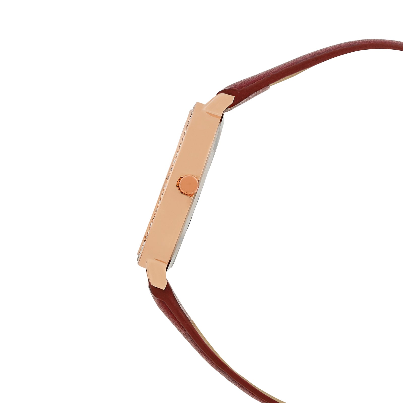 Sunrise Maroon Medium Rhinestone Dial PU Strap Women's Watch